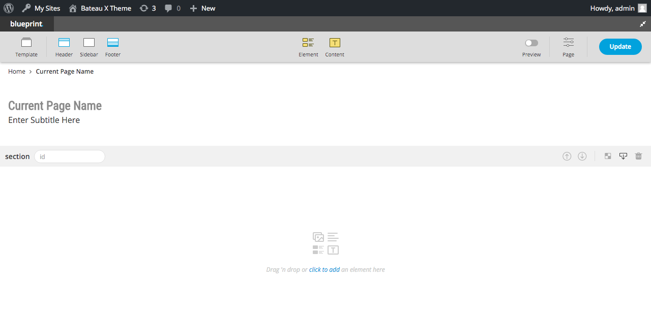 Bateaux Theme comes with package of live drag-and-drop page builder, Blueprint. Blueprint is unlike other page builder on the market. In Blueprint you can see all the changes in real time while customizing the options. To enable Blueprint, make sure that your plugin Bateaux Core has been activated by going to Appearance > Plugins.